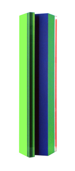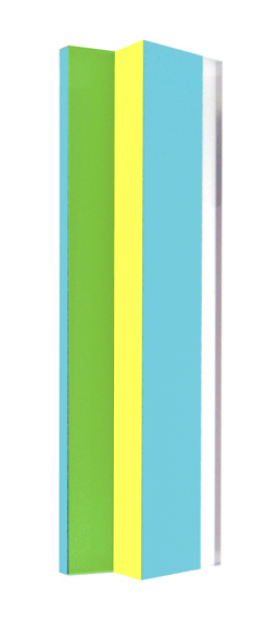 The color-towers reflect the vertical structure of the Stegplattenbilder. They increase the rather relief-ful effect of the Monochromien into the threedimensional space. These structures from strong acrylic-glass develop over complicated plans into the height and combine in each case a pointed with a right angle. The even more refined game with colors and forms can only be experienced by surrounding the sculptures. Views through transparent parts alternate with the multilateral different, painted parts and the superimpositions of the color-surfaces emerging also through the shadow-formations, that appear behind the thickness of the glass.